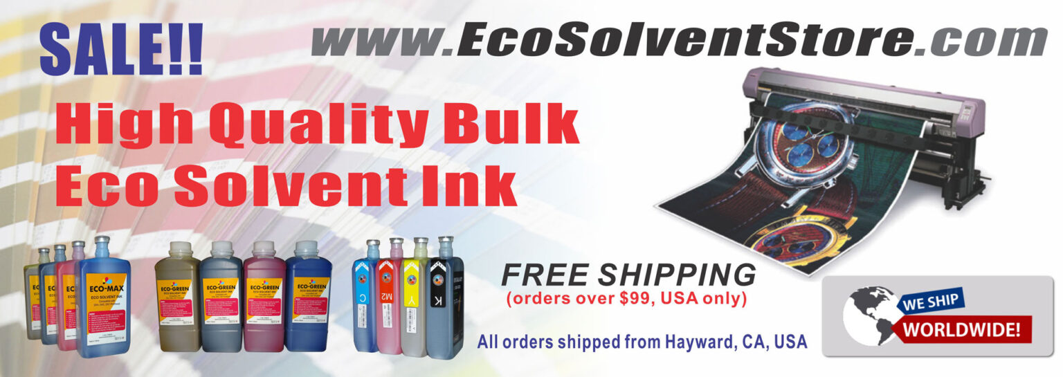 Eco Solvent Ink for ROLAND, MIMAKI, MUTOH, EPSON DX4, DX5, DX7, DX8, DX9, DX10, DX11, XP600, i1600, i3200, TX800, R1390, R1400 Printhead.